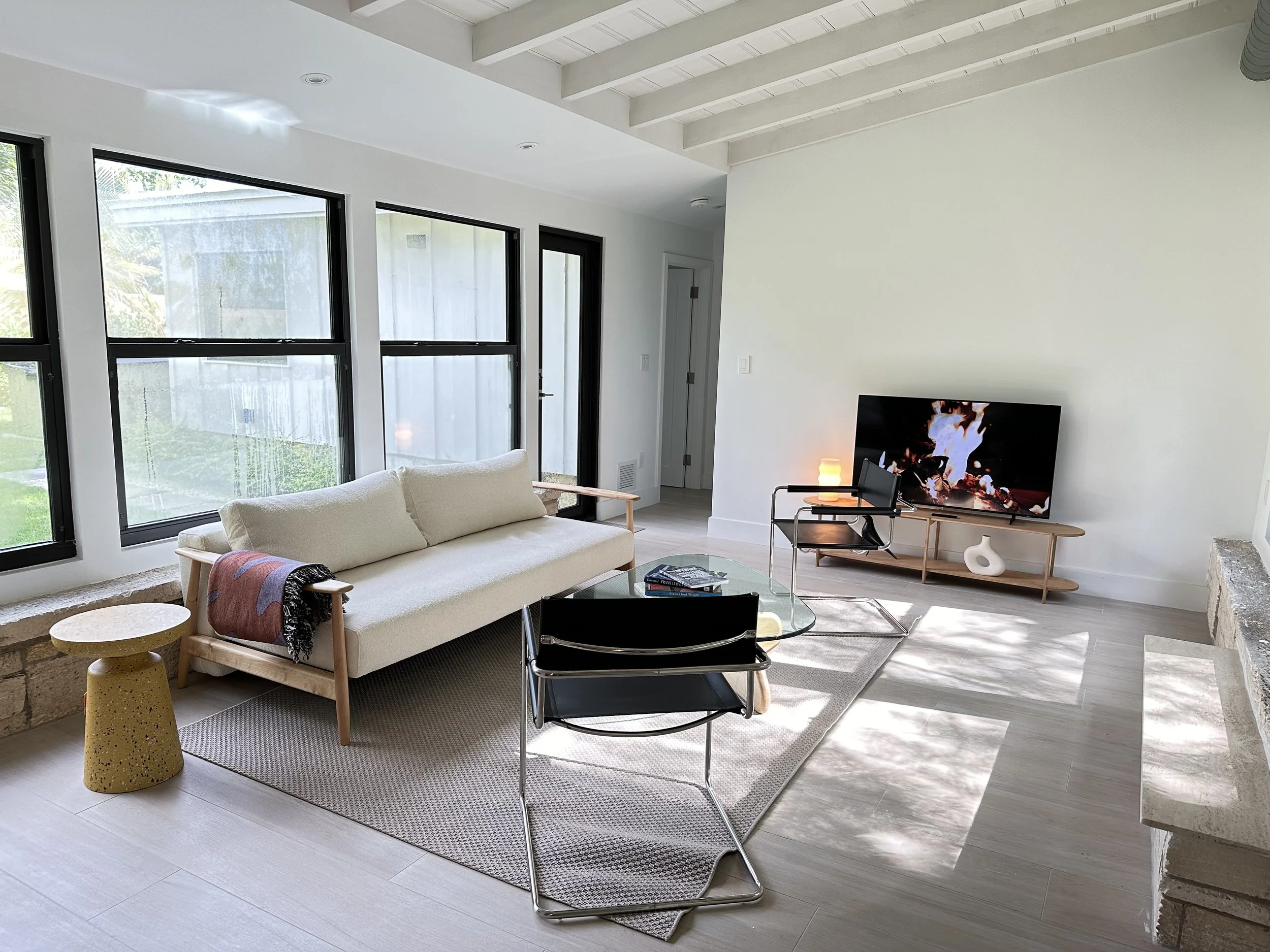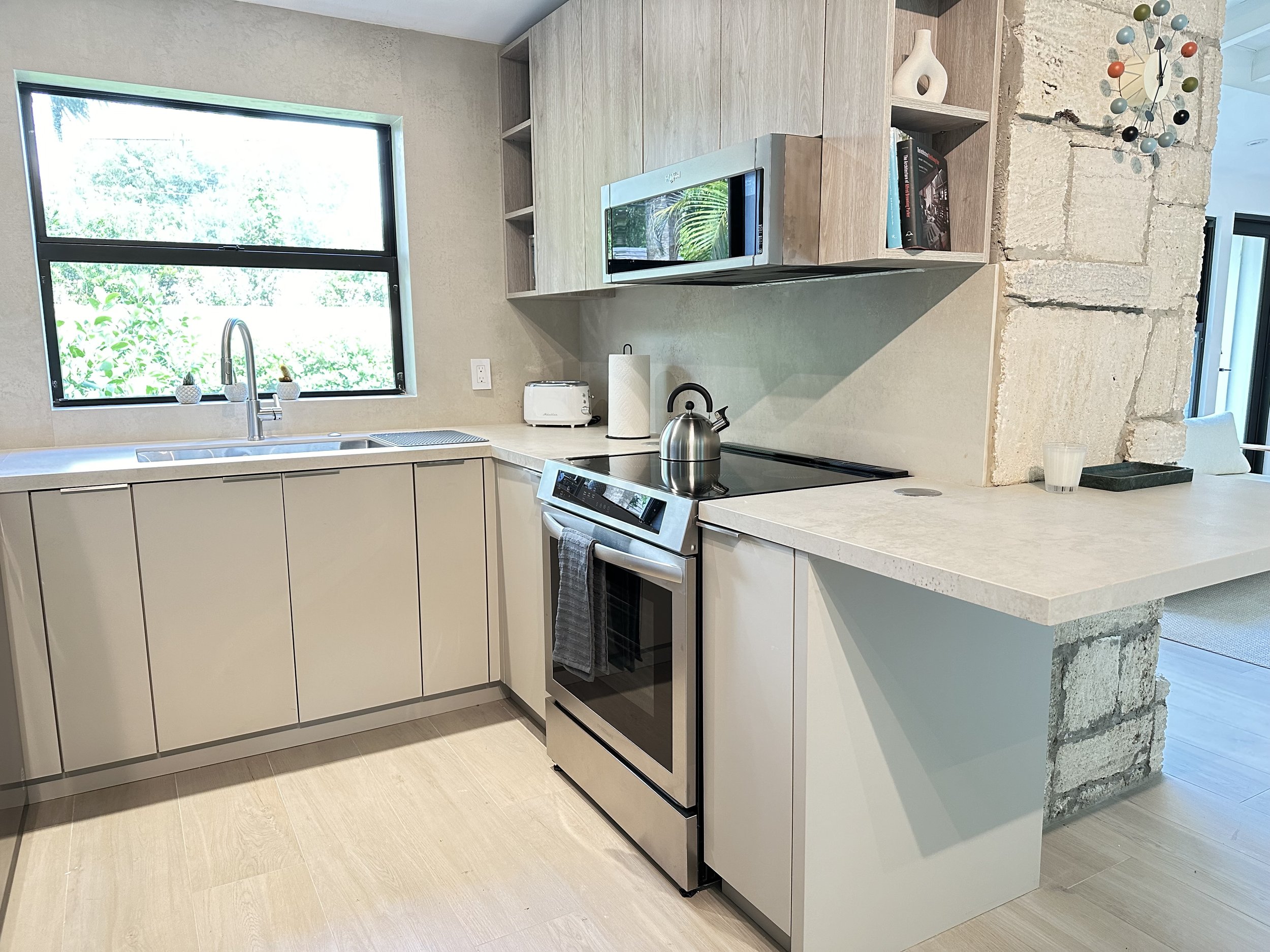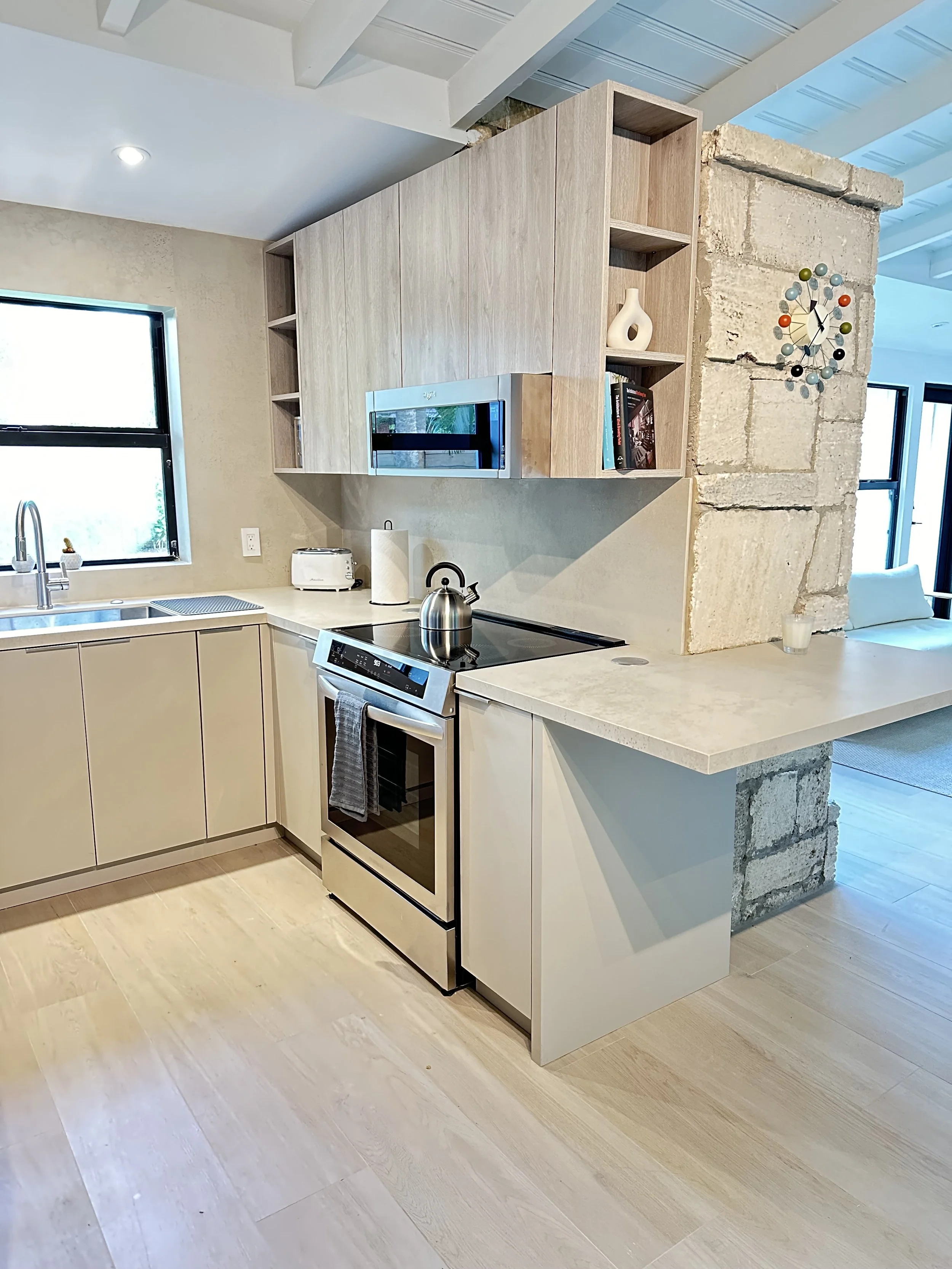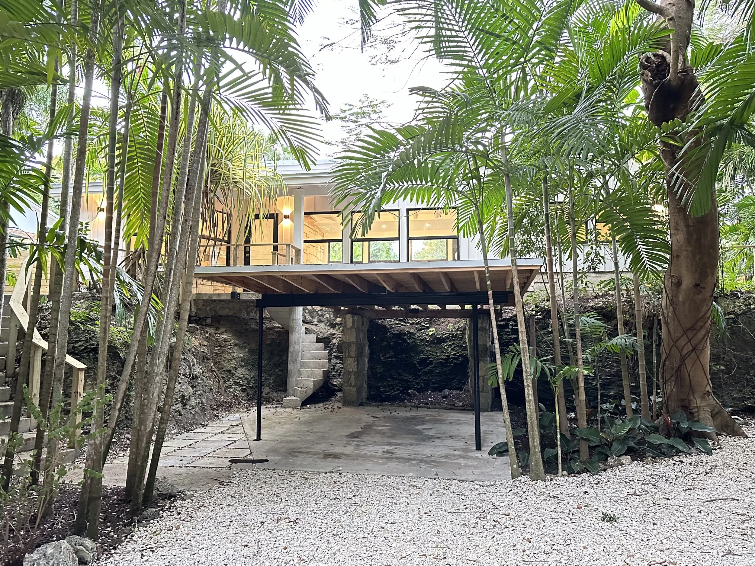 Originally designed in 1948 by Alfred Browning Parker, this residence has been carefully restored by Brisas Projects to preserve its architectural character while introducing modern upgrades. The home integrates mid-century details such as coral rock walls and open layouts with contemporary features designed for today’s living. Now operated as a short-term rental, the property is listed on leading platforms including Airbnb, VRBO, and Booking.com.